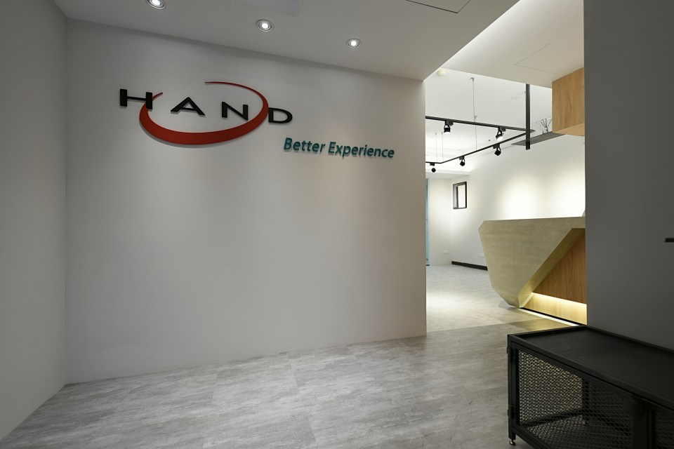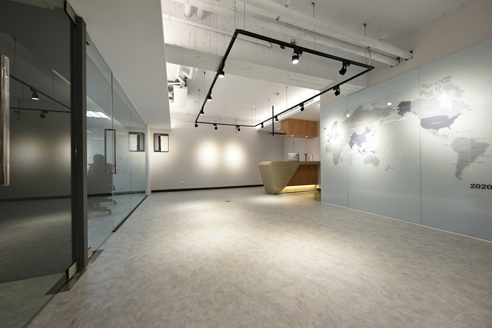 LOGO牆兼具內部空間造型牆設計 1體2用的概念 加上色塊區分 加大玄關空間